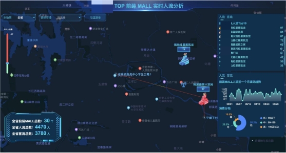 針對(duì)家裝MALL市場(chǎng),家裝MALL為交點(diǎn),結(jié)合家裝MALL周邊室分站負(fù)載信息,統(tǒng)計(jì)其實(shí)時(shí)人流情況,并利用B域數(shù)據(jù)對(duì)用戶畫像進(jìn)行刻畫與分析,進(jìn)行可視化展示,助力家裝市場(chǎng)商機(jī)挖掘,賦能精細(xì)化、個(gè)性化精準(zhǔn)營(yíng)銷。