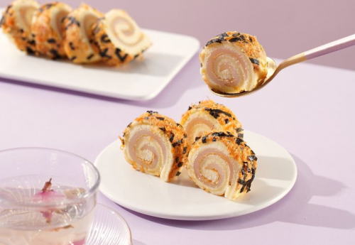 盼盼肉松海苔戚風卷,不愧是盼盼食品深耕烘焙產(chǎn)品的又一力作!外面滿滿的一層肉松與海苔,這絕妙搭配,讓整塊蛋糕卷的風味更上一個臺階!恰到好處的咸香口味,中和了甜點本會有的甜膩。第一眼看到松軟又帶有淡淡油潤的肉松上鋪著微脆的小片海苔,松軟鮮香,好吃又不膩,讓人忍不住深入挖掘,一探究竟!