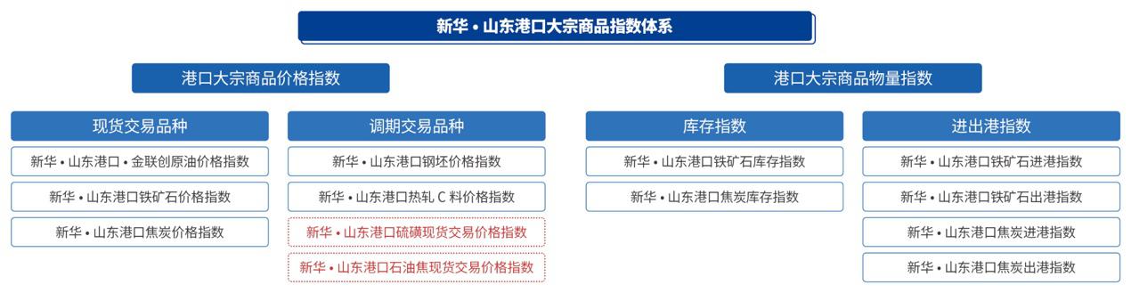 新華·山東港口大宗商品指數(shù)由中國經(jīng)濟信息社聯(lián)合山東省港口集團共同發(fā)布,2021年首次發(fā)布后不斷升級完善,形成了價格指數(shù)、庫存指數(shù)和進出港指數(shù)綜合體系。2023年指數(shù)再度擴容,新增硫磺現(xiàn)貨交易價格指數(shù)和石油焦現(xiàn)貨交易價格指數(shù)的發(fā)布。此次擴容后,指數(shù)體系包括原油、鐵礦石、焦炭、鋼坯、熱軋C料、硫磺現(xiàn)貨交易和石油焦現(xiàn)貨交易七只價格指數(shù),以及鐵礦石庫存、焦炭庫存、鐵礦石進港、鐵礦石出港、焦炭進港、焦炭出港六只物量指數(shù)。