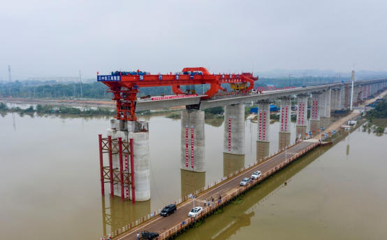 據(jù)中鐵三局項目負(fù)責(zé)人紀(jì)常永介紹,蘄河特大橋196米連續(xù)梁為全線重難點工程之一,大跨度連續(xù)梁拱縱移段總體水平長度為185.5米,是國內(nèi)縱移段水平長度之最。面對工序復(fù)雜,質(zhì)量要求高,施工安全風(fēng)險大等困難,項目部成立了安全質(zhì)量工期攻關(guān)小組,實行24小時作業(yè),采用異位拼裝整體縱移施工方案,蘄河特大橋連續(xù)梁以八天一節(jié)段的施工進(jìn)度快速推進(jìn),保證了節(jié)點工期按期實現(xiàn)。