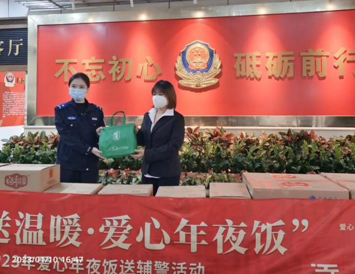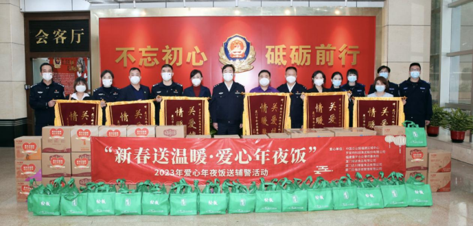 由中國(guó)企業(yè)報(bào)福建公司發(fā)起的“2023愛(ài)心年夜飯送輔警活動(dòng)”第三個(gè)中國(guó)人民警察節(jié)當(dāng)天在廈門(mén)市公安局大院隆重舉行,來(lái)自羅普特科技集團(tuán)股份有限公司、福建重宇合眾律師事務(wù)所、廈門(mén)綠進(jìn)食品有限公司、廈門(mén)達(dá)川臻富食品有限公司、廈門(mén)見(jiàn)福連鎖管理有限公司等愛(ài)心企業(yè)為廈門(mén)輔警支隊(duì)一線(xiàn)輔警送來(lái)了節(jié)日的問(wèn)候和預(yù)制菜、油、果汁等愛(ài)心年夜飯“大禮包”,以及口罩等防疫物資,向奮斗在在一線(xiàn)守護(hù)廈門(mén)城市平安的執(zhí)勤輔警表示感激和敬意。