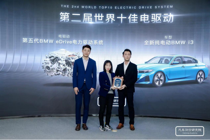 世界十佳動力系統(tǒng)評委會秘書長孫浩然、汽車評價研究院副院長李鏑鋒為BMW企業(yè)代表頒獎