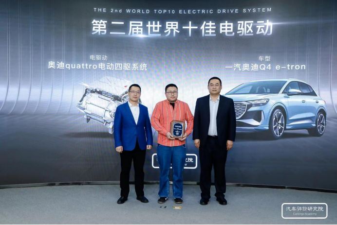 汽車評價研究院首席研究員王冀,北京航空航天大學交通科學與工程學院教授、國家乘用車自動變速器工程技術(shù)研究中心副主任、中國汽車工程學會齒輪技術(shù)分會副主任王書翰,為一汽奧迪企業(yè)代表頒獎