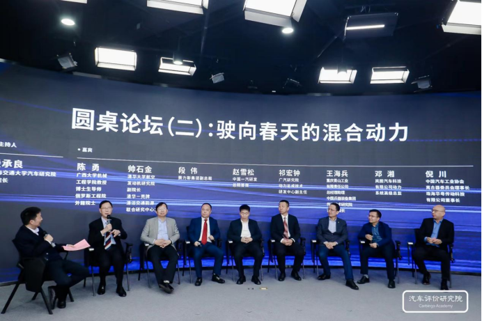 在上海交通大學教授、汽車研究院副院長殷承良的主持下,廣西大學機械工程學院教授、博士生導師、俄羅斯工程院外籍院士陳勇,清華大學教授、航空發(fā)動機研究院副院長、清華-殼牌清潔交通能源聯(lián)合研究中心主任帥石金,賽力斯集團副總裁段偉,中國一汽研發(fā)總院首席趙雪松,廣汽研究院動力總成技術(shù)研發(fā)中心副主任祁宏鐘,重慶青山工業(yè)總經(jīng)理助理、中國兵器裝備集團傳動技術(shù)研究院常務副院長王海兵,嵐圖汽車動力系統(tǒng)高級總監(jiān)鄧湘,中國汽車工業(yè)協(xié)會離合器委員會理事長、珠海華粵董事長倪川圍繞著“駛向春天的混合動力”這一主題進行了交流討論。