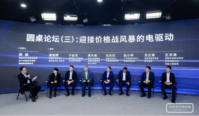 在電動汽車電驅(qū)動系統(tǒng)全產(chǎn)業(yè)鏈技術(shù)創(chuàng)新戰(zhàn)略聯(lián)盟理事長貢俊的主持下,中國科學院電工研究所主任、研究員溫旭輝,北京理工大學機械與車輛學院教授于會龍,清華大學車輛與運載學院副教授、博士生導師高大威,深藍汽車動力開發(fā)部副總經(jīng)理杜長虹,廣汽埃安研發(fā)中心電驅(qū)系統(tǒng)總監(jiān)趙小坤,極狐電驅(qū)動項目研發(fā)總師蘇正杲,博格華納聯(lián)合傳動系統(tǒng)有限公司電驅(qū)工程經(jīng)理王洪濤等嘉賓,圍繞“迎接價格戰(zhàn)風暴的電驅(qū)動”這一主題進行了交流討論。