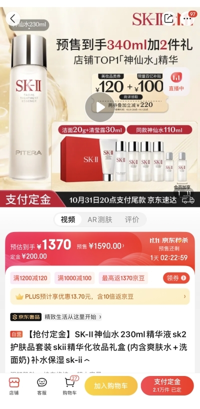 享譽全球的SK-II鎮(zhèn)店王牌神仙水,是每個精致女孩化妝臺上的必備好物。其蘊含超過90%的天然生物成分PITERA?,從根源強韌修護(hù),顯著減少秋冬肌膚干燥泛紅,抑制老化因子,讓肌膚更加細(xì)膩緊致、晶瑩剔透。京東11.11期間,原價1590元的SK-II神仙水230ml裝到手價1370元,同時加贈神仙水110ml、潔面20g、清瑩露30ml,為消費者打造全流程的精致護(hù)膚體驗。