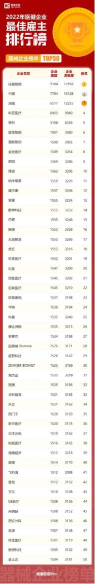榜單中的企業(yè)是我們醫(yī)健行業(yè)從業(yè)者自己一票一票投出來的,蘊含了醫(yī)健行業(yè)從業(yè)者對企業(yè)最大地肯定、鼓勵、表彰和敬意。讓我們一起看看哪些企業(yè)獲得了這些榮譽。