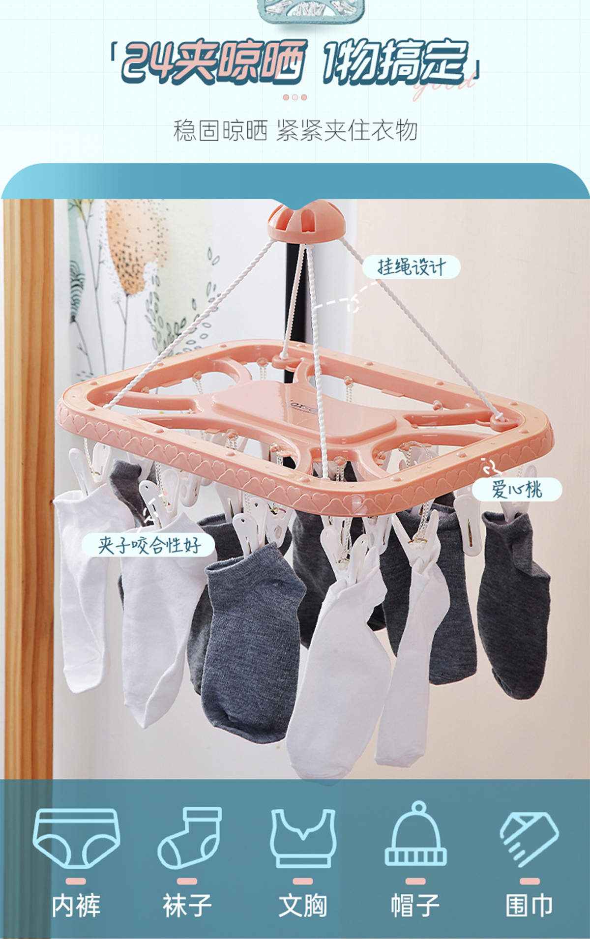 雙色長(zhǎng)方形24夾曬架 2023年新色