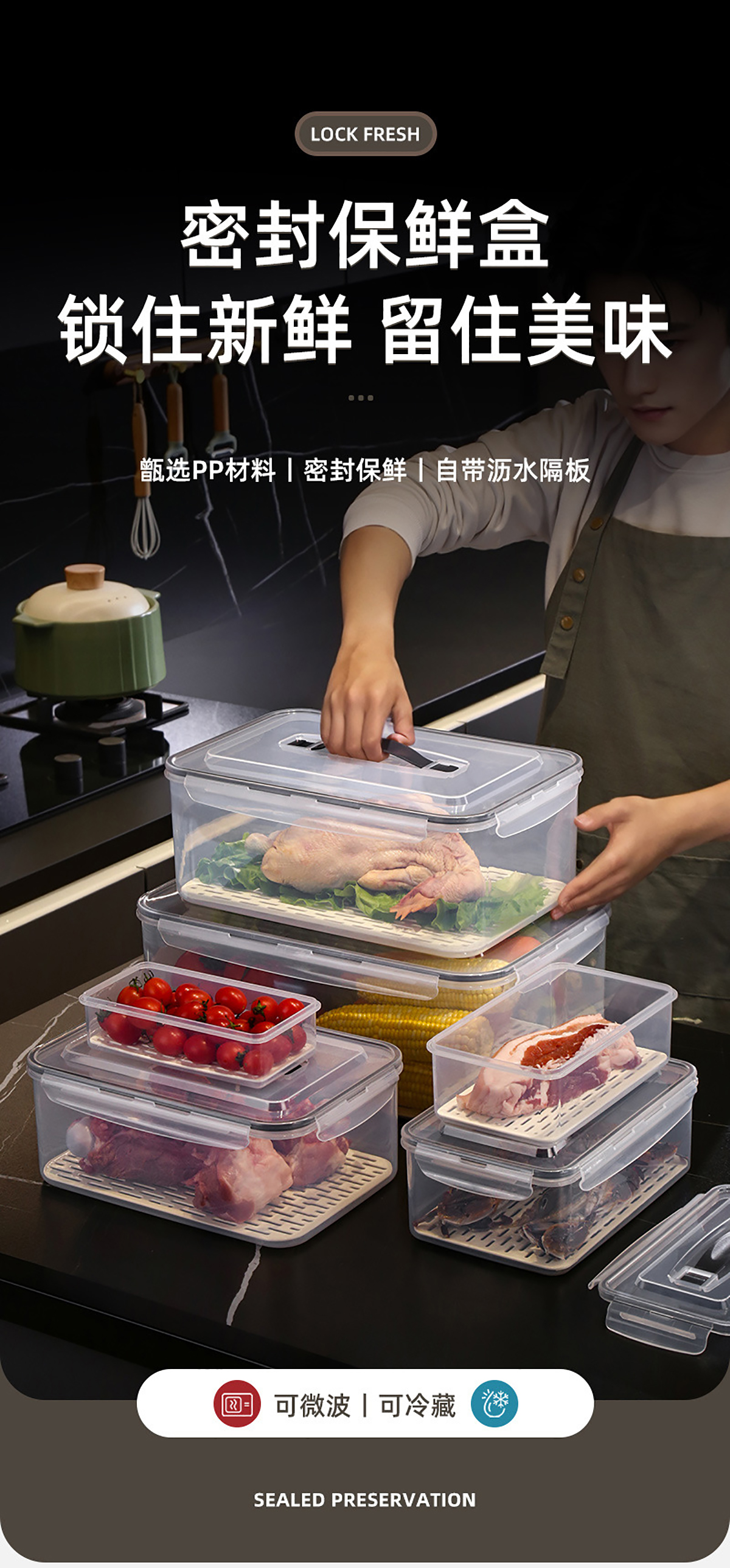 三件套/四件套/五件套/六件套手提密封瀝水板保鮮盒