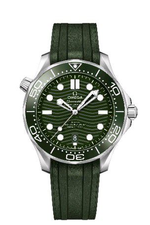 這款海馬系列300米潛水表搭配綠色波紋表盤。表殼為42毫米,采用精鋼材質打造,經(jīng)拋光和拉絲處理,搭配單向旋轉拋光綠色陶瓷表圈,飾以由“大明火”工藝制成的白色琺瑯潛水刻度,12點位設有覆以Super-LumiNova夜光涂層的圓點,在暗黑環(huán)境中呈現(xiàn)以綠色效果。旋入式表背經(jīng)拋光和拉絲工藝打磨,飾有波紋邊緣,透過藍寶石玻璃表背,可以欣賞到歐米茄8800至臻天文臺機芯的運轉美態(tài)。對于喜愛運動風格的人士而言,腕表搭配一體式綠色橡膠表帶,更便于運動佩戴。